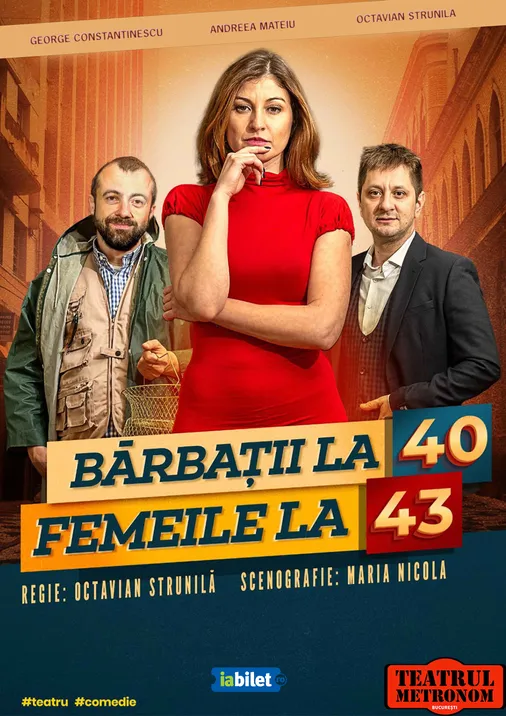 Să renunți la facultate pentru cariera soțului și apoi să constați că te înșală, să te prindă criza de la 40 cu un milion de euro în cont sau să fii părăsit pentru că ești un om prea bun la suflet sunt problemele cu care se confruntă personajele noastre, surprinse în trei tablouri: la 29, la 40 și apoi la 43 de ani. Show more details