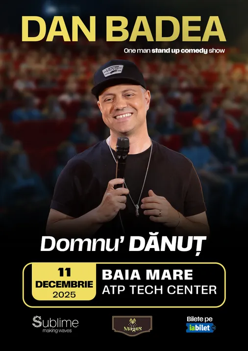 Dan Badea vine la Baia Mare în avanpremiera noului său turneu Domnu' Dănuț cu glume noi și o (psiho?)analiză amuzant de lucidă a situației de a te simți copil la aproape 47 de ani. Ca bărbat.