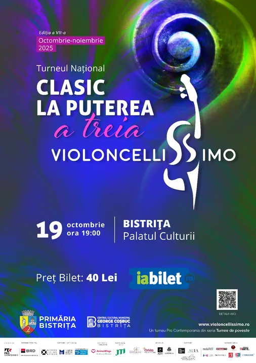 Primăria Municipiului Bistrița şi Centrul Cultural Municipal „George Coșbuc” vă invită la: Violoncellissimo - Clasic la Puterea a treia (Turneu Naţional 2025). Show more details