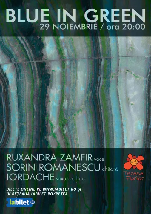 "Blue in green" - jazz în culori cu Ruxandra Zamfir, Sorin Romanescu & Iordache la Terasa Florilor!