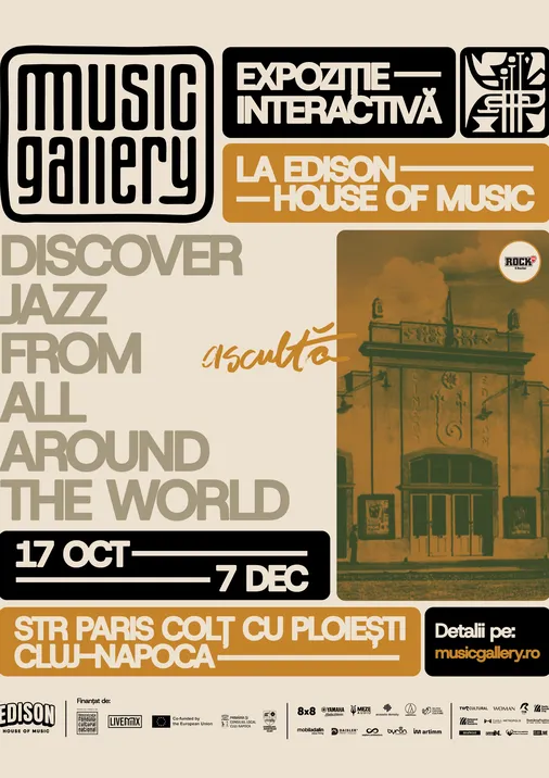 Music Gallery te invită într-o expoziție interactivă dedicată universului muzicii, unde tehnologia, arta și sunetul se întâlnesc într-o experiență senzorială completă. Expoziția are loc în spațiul Edison - House of Music, situat pe strada Paris, colț cu strada Ploiești, în Cluj Napoca (zona Piața Mihai Viteazu). Tema din acest an este „Discover Jazz from all around the World” și propune o călătorie în timp, de la originea jazzului până la răspândirea lui pe plan global. Show more details