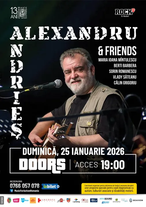 Alexandru Andrieș & Friends urcă pe scena Doors într-un concert umanitar, dedicat campaniei Music for Autism – o inițiativă născută chiar aici, în Clubul Doors, care de 13 ani aduce muzica mai aproape de cei care au nevoie de ea. Show more details