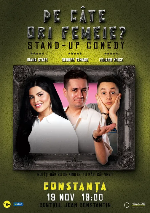 Constanța devine, pe 19 noiembrie, capitala umorului! La Centrul „Jean Constantin”, trei dintre cei mai apreciați comedianți ai momentului – Ioana State, George Tănase și Eduard Moise – urcă pe scenă pentru un show de stand-up memorabil.