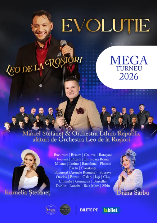 Drumul unui artist, povestea unei vieți! Un proiect pentru tot anul 2026! Leo de la Roșiori Music, alături de Orchestra Ethno Republic sub bagheta magică a maestrului Marcel Stefanet, alături de Diana Sârbu și Kornelia Stefanet, aduce în fața voastră cel mai mare turneu al unui artist român! Peste 30 de concerte în România, Europa și nu numai.