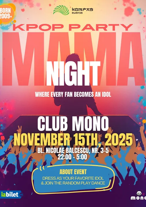 Pregătește-te pentru cea mai intensă noapte K-pop din toamnă. MAMA NIGHT revine la Mono Club cu o ediție plină de energie, muzică și outfituri inspirate de idolii tăi preferați.