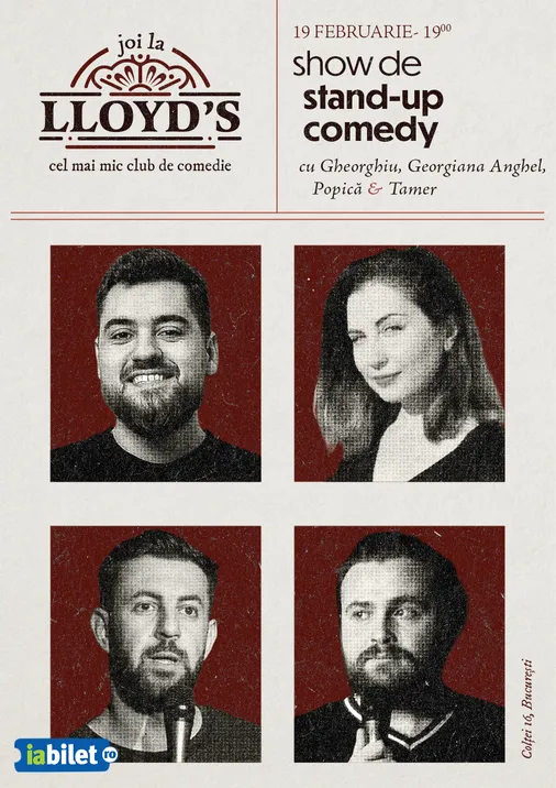 Lloyd’s: Stand-up comedy cu Călin Gheorghiu, Georgiana Anghel, Popică și Tamer