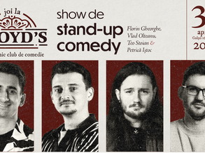 Te așteptăm la Lloyd's Comedy Club să te distrezi alături de noi la un Show de Stand-up Comedy oferit de 4 comedianți talentați, pregătiți să te facă să râzi cu momentele lor pline de umor.