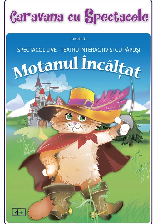 Un spectacol complex, ce îmbină jocul actorilor cu păpuşi şi elemente de animaţie, un spectacol care încântă prin costume, decoruri şi starea de joc interactiv. Acest joc îi va implica foarte mult pe micuţii spectator, care vor participa activ la spectacol, ajutându-l pe Motanul nostru să-şi ducă planul la îndeplinire.