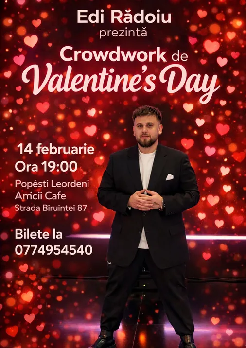 Pe 14 februarie, la Amicii Cafe din Popești-Leordeni, te invităm la o seară specială de crowd work cu Edi Rădoiu.