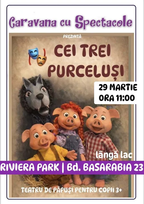 Povestea celor trei purceluși - teatru de păpuși pentru copii @ Restaurant Riviera Park din Parcul Național
