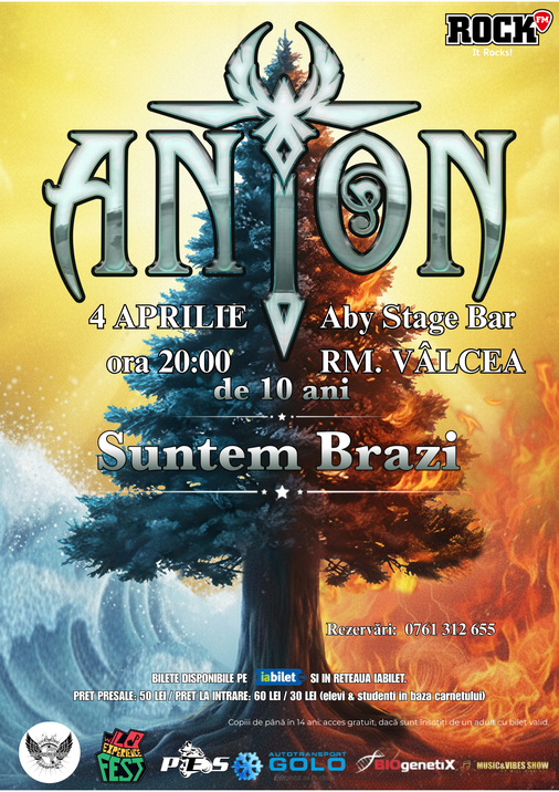 Turneul aniversar ANTON “de 10 ani Suntem Brazi” ajunge la Râmnicu Vâlcea, în Aby Stage Bar, sambata, 04 aprilie!