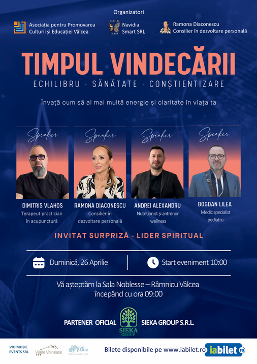 Evenimentul aduce împreună 5 specialiști din domenii complementare: dezvoltare personală, pediatrie, nutriție, spiritualitate și terapii alternative, oferind o abordare completă asupra procesului de vindecare – de la corp, la minte și suflet.
