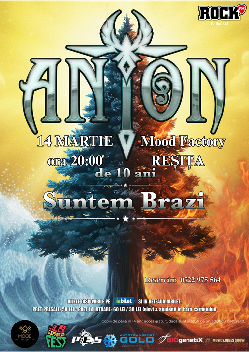 Turneul aniversar ANTON “de 10 ani Suntem Brazi” ajunge la Resita, în Mood Factory, sambata, 14 martie!