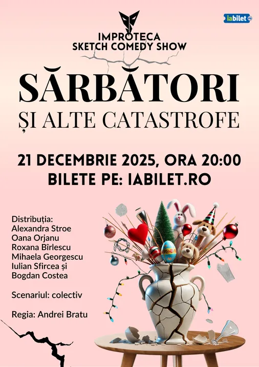 Vă invităm pe 21 decembrie 2025, ora 20:00, la spectacolul Sărbători și alte catastrofe un sketch comedy care transformă momentele „magice” ale sărbătorilor într-un carusel de aventuri pline de umor.