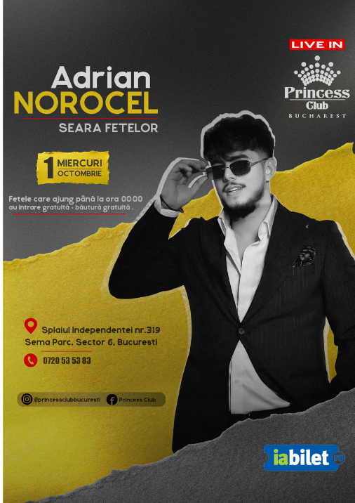 Invitatul special al serii este nimeni altul decât ADRIAN NOROCEL, pregătit să ridice sala în picioare și să transforme noaptea într-un spectacol total.