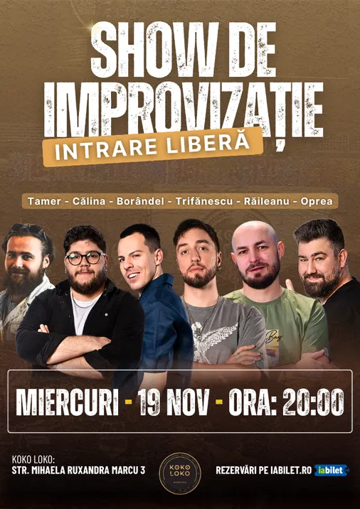 Un show de improvizație plin de energie și creativitate, unde nimic nu este pregătit dinainte! Comedianții creează pe loc scene amuzante, personaje neașteptate și situații surprinzătoare, inspirându-se din sugestiile publicului.