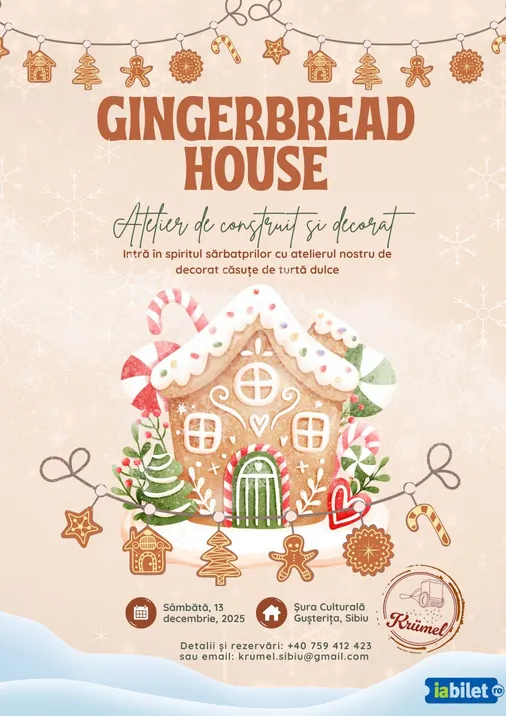 Pe 13 decembrie, la Krümel, ne adunăm în jurul miresmei de scorțișoară, portocală și… copilărie. Vă invitam să construim împreună cele mai drăgălașe căsuțe de turtă dulce, decorate cu glazură albă ca zăpada și bomboane colorate care aduc bucurie.