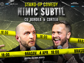Cătălin Bordea și Nelu Cortea aleg calea directă în noul lor show de stand-up comedy - “Nimic subtil”. Și este exact ceea ce ai nevoie! Într-o lume care ne cere constant să fim cu perdea și să ne ascundem trăirile în spatele unui zâmbet politicos, Bordea și Cortea spun lucrurilor pe nume. Filtru? Nu există. Subtilitate? Zero. Glume? Din plin.