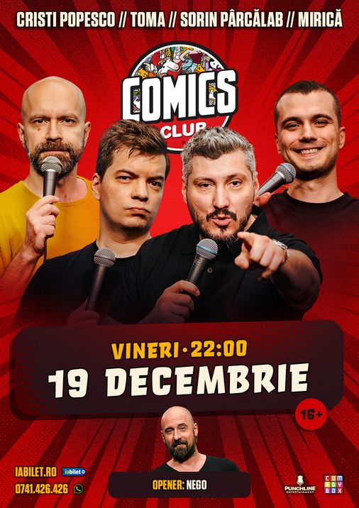 Stand-up cu Cristi Popesco, Toma, Sorin Pârcălab și Mirică la ComicsClub!