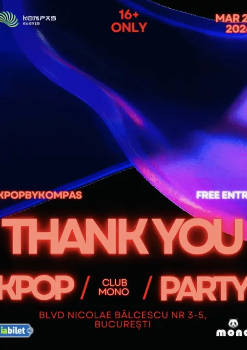“Thank you” K-Pop Party este un eveniment special dedicat comunității K-Pop care a fost alături de noi în toți acești ani. Pe 21 martie 2026, vă așteptăm la o seară de muzică, dans și energie alături de alți fani care împărtășesc aceeași pasiune.