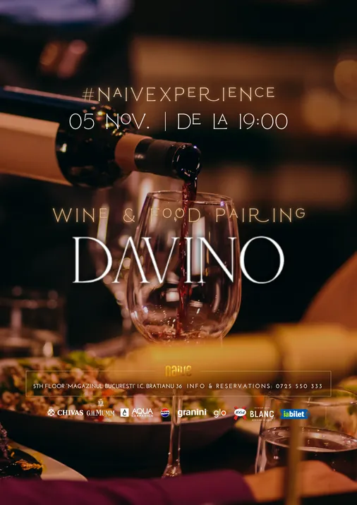 Pentru o seară unică, vă invităm Miercuri, 5 Noiembrie, începând de la ora 19:00, la Naive, la degustarea verticalei 2016-2020 a unuia dintre cele mai admirate vinuri românești: FLAMBOYANT de la DAVINO.